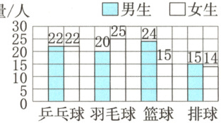 C.对乒乓球和排球最感兴趣的学生中,男生人数和女生人数都相近