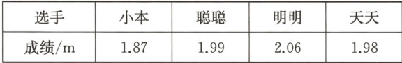 2. 小本、聪聪、明明和天天四名同学参加学校运动会的立定跳远项目,成绩如下。