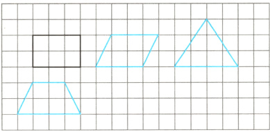 22. 在方格纸上,分别画出1个平行四边形、1个三角形和1个梯形,使它们都与图中长方形的面积相等。(每个小方格的面积是1平方厘米)(6分)