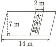 23. 如图,开心小学校园里有一块平行四边形空地,学校准备将这块空地铺成草坪,并在草坪中留出一条宽为2m的水泥路。如果铺$1m^{2}$的草坪需要15元,那么铺这块草坪需要多少元?(4分)