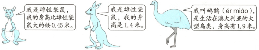 答:鸸鹋的身高比雌性袋鼠高0.95米。