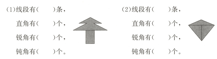8. 在右面的图形里加一条线段,把它分成一个长方形和一个三角形。变化后的图形里共有(