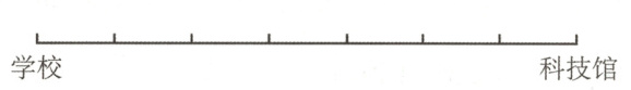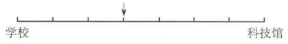 (1)学校到科技馆全程约 14 千米,其中甲车行 了全程的$\frac{3}{7}$后,驶进加油站加油。请在下图中用“$\downarrow$”标出加油站的位置。(2 分)
