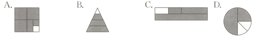 3. 下面各图都表示“1”,涂色部分的大小可以用“$\frac{1}{2}+\frac{1}{4}+\frac{1}{8}$”表示的是(