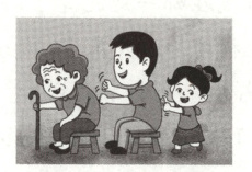 漫画的内容是爸爸在给他的妈妈捶背,孩子在给爸爸捶背。这体现了“孝”在一代一代地传承。