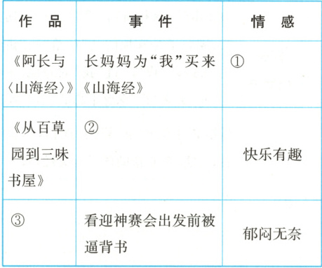 (1)《朝花夕拾》这本书回忆了鲁迅的童年。请你根据书中内容,参照提示将下面的表格填写完整。