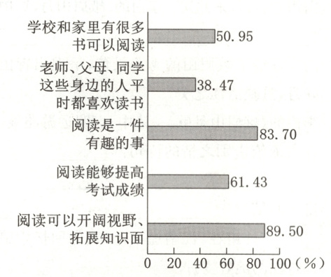 作为精神文明建设的重要抓手,中小学阅读建设一直受到重视。《义务教育语文课程标准》明确提出:“学会运用多种阅读方法,具有独立阅读能力。能阅读日常的书报杂志,初步鉴赏文学作品。”为更好地了解我国中小学生阅读现状以及阅读带给学生的改变,北京大学教育学院和语文教育蓝皮书编委会组织开展了“语文教育发展全国问卷调查”工作。调查结果显示,中小学生喜欢阅读的主要原因是(1)