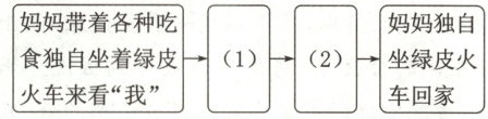 妈妈带着各种吃食独自坐着绿皮火车来看“我”→(1)→(2)→妈妈独自坐绿皮火车回家