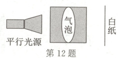 12. (2024·晋城阳城段考)如图所示的一块正方体玻璃砖中央部分有一个椭圆形的气泡,用一平行光源发出一束平行光从玻璃砖左侧入射,在右侧放置一张白纸,下列说法正确的是(
