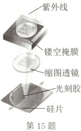 15. (新情境·科技民生)(2024·太原一模)光刻机工作原理如图所示,当紫外线通过掩膜、缩图透镜时,可将绘制在掩膜上的电路图投射到涂有光刻胶薄膜的硅片上,从而制造出集成电路。下列说法正确的是(
