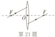 20. 教室内的投影仪,其镜头相当于凸透镜,使电脑上的文字在屏幕上成像,投影仪形成的是文字