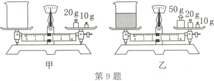 9. 小明在用托盘天平测量质量时,先把天平放在水平台面上,再将游码拨到“$0$”刻度线处后,指针静止时偏向分度盘右侧,此时应向