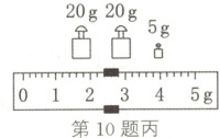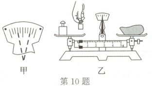 10. 小明利用天平测一小物体的质量时: