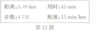 12. (2024·大同开学)小明在校园散步时看到自己运动手表的部分信息如图所示,其中由“配速”信息可判断配速数值越小小明运动得越