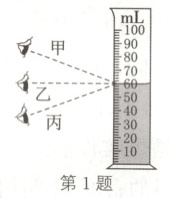 mL。三名同学在用量筒测量液体的体积时,读数情况如图所示,其中乙
