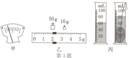 (3)用量筒测得零件的体积如图丙所示,则零件的体积为