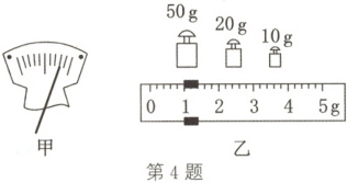 (填“左”或“右”)端调节。(2) 用天平测量玩具质量,当天平平衡时,右盘中的砝码和游码位置如图乙所示,其质量为
