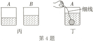(4) 如图丁所示,将玩具用细线系住后放入烧杯A中,在烧杯壁上标记液面的位置。