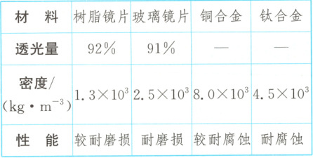 (2) 已知一副眼镜的铜合金镜架的质量为 20 g,若以钛合金代替铜合金,则这副眼镜镜架的质量是多少?
