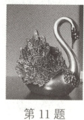 11. 小丽在动物园游玩时购买了一个如图所示的天鹅小摆件,卖家介绍,该摆件是由合金制成的,其内部为空心。用天平测得天鹅摆件的质量为 $ 168 \, g $,又测出了它的体积为 $ 96 \, cm^{3} $。($ \rho_{合金} = 4.0 × 10^{3} \, kg/m^{3} $,$ \rho_{木} = 0.8 × 10^{3} \, kg/m^{3} $,$ \rho_{水} = 1.0 × 10^{3} \, kg/m^{3} $)