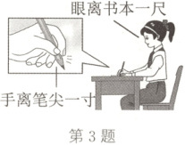 3. (新情境·社会热点)(2024·太原杏花岭校级模拟)6月6日是“全国爱眼日”,而不正确坐姿可能会造成近视眼以及近视度数的加深,正确坐姿距离要求“一尺一寸一拳头”,如图所示,眼睛到书本的距离约为(