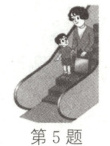 5. (2024·太原杏花岭校级段考)国庆节小明和妈妈到“五一大厦”逛商场,当他们乘自动扶梯下楼时(如图),妈妈拉着小明的手说:“小明,站着别动。”妈妈劝小明不动选择的参照物是(