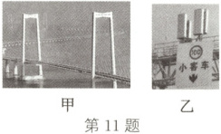 11. (新情境·科技民生)(2024·太原小店校级段考)港珠澳大桥(如图甲)全长55 km,是世界上最长的跨海大桥,由引桥、跨海桥、海底隧道三部分组成,其中跨海桥长22.9 km,海底隧道长6.7 km,大桥设计使用寿命120年,可抵御8级地震、16级台风、30万吨船舶撞击。图乙是港珠澳大桥的限速牌。