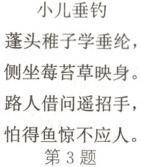 3. 唐代诗人胡令能写的一首诗,如图所示。垂钓小儿不敢答话,因为他知道,声音可能会吓跑将要上钩的小鱼。此事表明