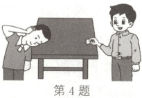 4. 如图所示,小亮和小刚同学做固体能否传声的实验。小亮用手捂住一只耳朵,然后把另一只耳朵紧贴在桌面上,小刚用手轻敲桌面,他自己几乎没能听到敲桌子声,但小亮却听到了清晰的敲桌子声。由此说明