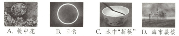 5. 沙画是将沙子撒在平板灯台上做出各种造型的一种艺术,灯台下方射出的光受到沙子的阻挡后,呈现出各种画面。下列光现象与沙画的光学原理相同的是(