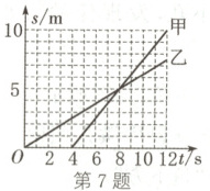 7. 甲、乙两同学沿平直路面由东向西步行,路程随时间变化的图像如图所示。下列说法正确的是(