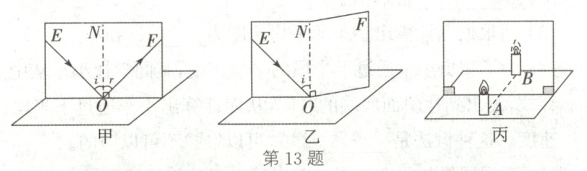 ③ 如图乙所示,把纸板NOF绕ON向后折,在纸板上看不到反射光。这表明:在反射现象中,反射光线、入射光线和法线都在