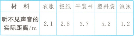 (4)小明一边听声音,一边向后退,当听不见声音时分别测量并记录此处到鞋盒的距离(如表所示),分析实验结果,这些材料中隔音性能最好的是