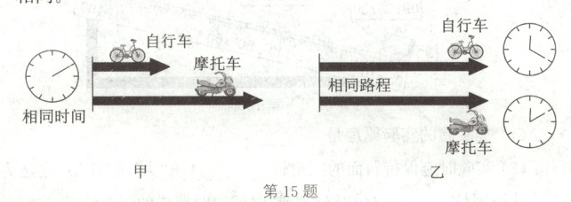 15.相同路程比时间 甲