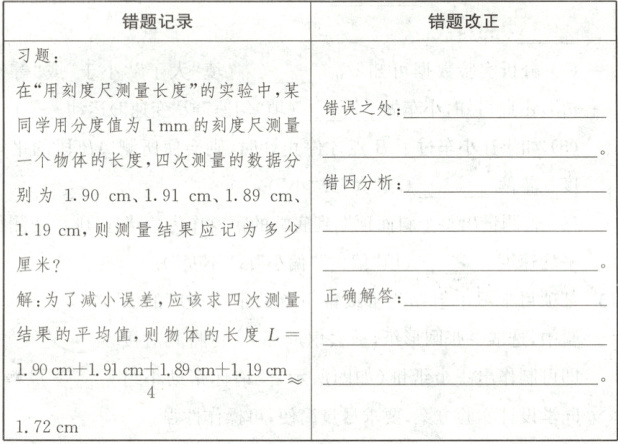 16.1.19cm 准确值与其他数据不同 L = $\frac{1.90cm + 1.91cm + 1.89cm}{3}$ = 1.90cm