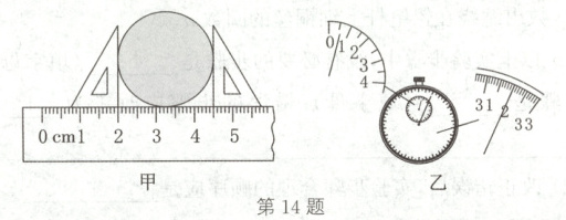 14. 如图甲所示,测出的硬币直径是