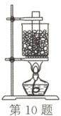 10. 如图所示,一个烧杯中盛有0℃的碎冰,把装有0℃碎冰的试管插入烧杯里的碎冰中(试管底部不接触烧杯底),对烧杯缓缓加热,当烧杯中的冰有一半熔化时,试管中的冰将(