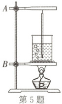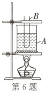 6. 如图所示,大容器A和小容器B均装有水,在容器A底部加热使容器A内的水沸腾,继续加热,容器B内的水(