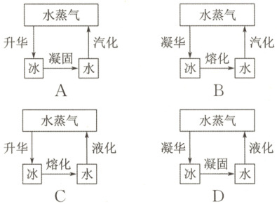 D.冬天,水蒸气在寒冷的高空急剧降温,从而凝固成微小的冰晶,这些冰晶聚集起来,变成雪花飘落大地