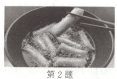 2. (跨学科实践·日常生活)小华和奶奶炸春卷时,不小心把筷子上的水滴入油锅,油星四溅,且发出了“噼里啪啦”的响声,如图所示。这是因为此时油的温度高于水的