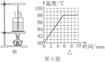 8. (2024·镇江)小李用图甲所示装置观察水的沸腾,正确实验并采集数据后,绘制出如图乙所示的图像。关于本实验,下列说法正确的是(