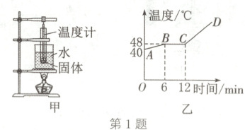 1. 小红选择蜂蜡和海波探究“不同固态物质在熔化过程中温度的变化是否相同”,设计的实验装置如图甲所示。