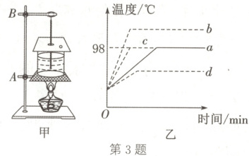 3. (2024·枣庄)某实验小组用如图甲所示的实验装置探究“水沸腾前后温度变化的特点”,所用实验装置如图甲所示。