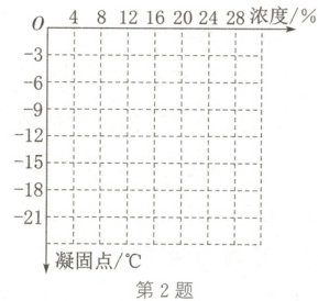 中,多次实验得出不同浓度盐水的凝固点,数据记录如表:(1)根据表格数据,在图中绘制凝固点—浓度图像。