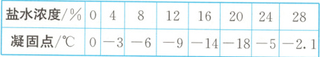 (2)随着盐水浓度的增大,盐水的凝固点先降低后升高