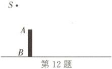 12. 如图所示,S是点光源,AB是一个不透明的木板,在图中作出AB在地上的影子(用阴影表示)。