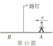 10. 小刘晚上下班回家经过一盏路灯,如图所示,当他从A点沿直线走向B点的过程中,他的影子长度的变化情况是(