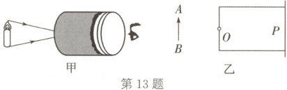 13. 制作简易针孔照相机:在空易拉罐底部的中央,用钉子戳一个小孔,将易拉罐的顶部剪去后,蒙上一层半透明塑料薄膜,如图甲所示。