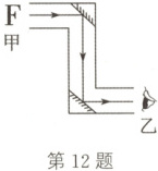 12. (2024·苏州虎丘校级段考)如图所示,是小明同学自制的潜望镜,利用它能在隐蔽处观察到外面的情况。当它正对甲处的“F”光源时,人眼在乙处观察到的像是(
