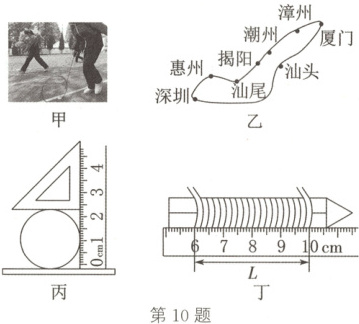C.图丙中使用三角板和刻度尺多次测出纪念币的直径,求平均值,减小误差
